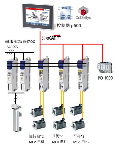 伦茨的解决方案包括MCA异步伺服电机、i700伺服驱动器和c5x0运动控制器。