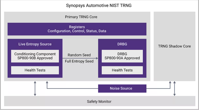 在现代车辆所需的软件安全基础架构中,真随机数生成器(TRNG)是关键组成部分。TRNG用于生成高质量随机数,这对于防范软件安全漏洞、维护数据完整性至关重要。